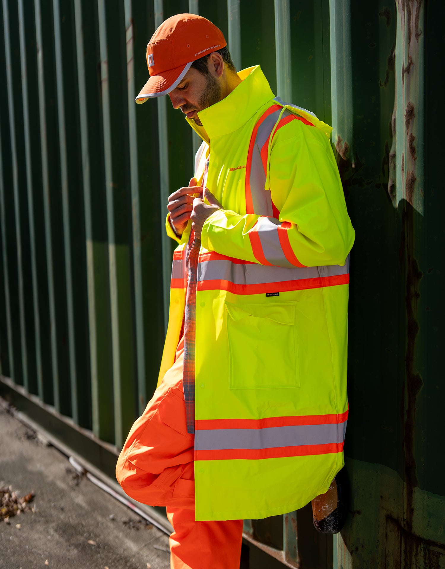 Hi Vis Safety Rain Jacket with Snap-Off Hood
