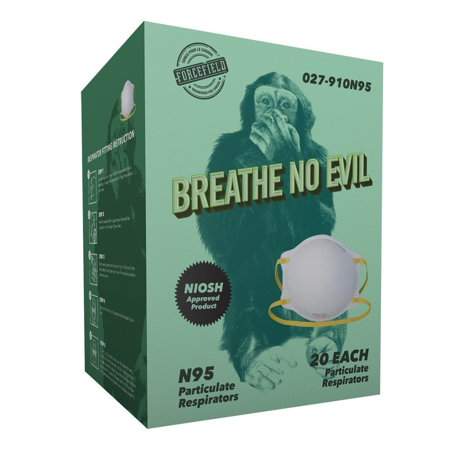 Distributeur :FORCEFIELDRespirateur jetable N95 « Breathe No Evil », 20 par boîte