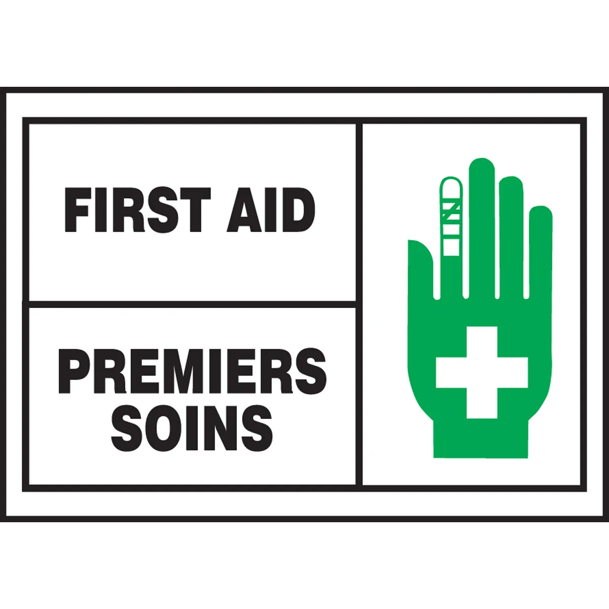 Étiquette autocollante bilingue anglais/fr de premiers secours