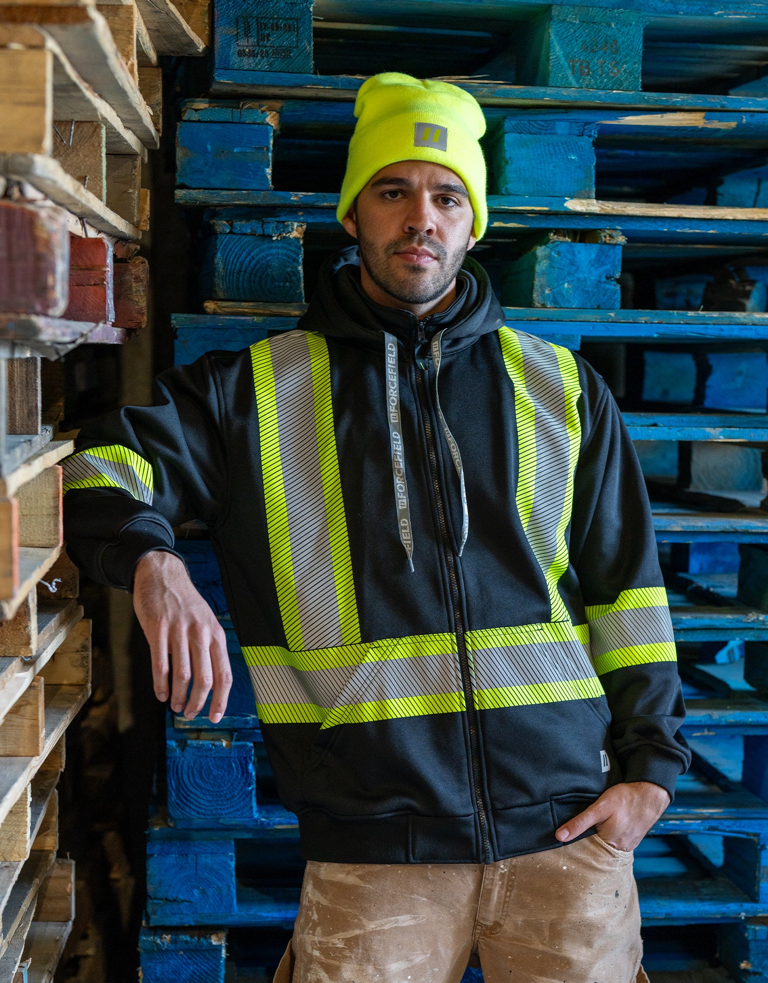 Sweat à capuche de sécurité haute visibilité avec bande réfléchissante segmentée et capuche amovible