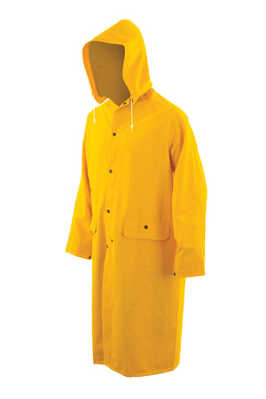 Restez au sec avec style grâce à notre manteau de pluie 3/4, doté d'un matériau 100 % imperméable, d'une capuche amovible, d'une fermeture éclair sur le devant avec fermeture à rabat à bouton-pression, de poignets à bouton-pression, d'un dos ventilé et de coutures soudées. Fabriqué à partir de PVC/POLY/PVC durable de 0,35 mm pour une usure durable.