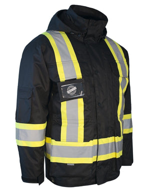 Parka de sécurité d'hiver haute visibilité 3 en 1 avec doudoune amovible en nylon noir