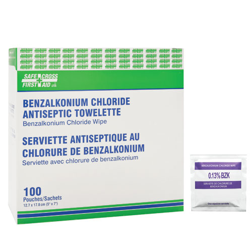 Chlorure de benzalkonium (BZK), lingettes antiseptiques, 100/boîte