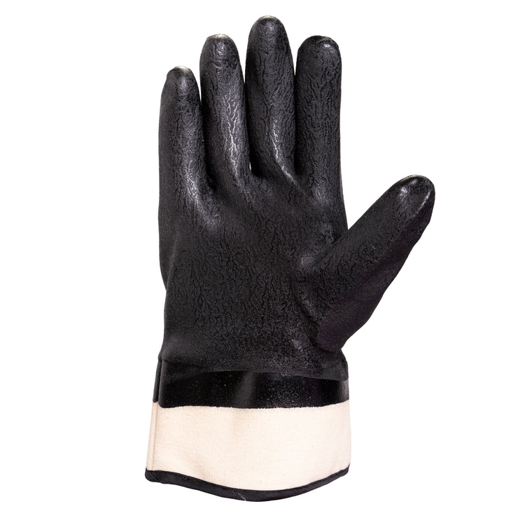 - Le mélange nitrile/PVC entièrement enduit offre une protection maximale contre les produits pétrochimiques et résiste aux perforations et à l'abrasion.