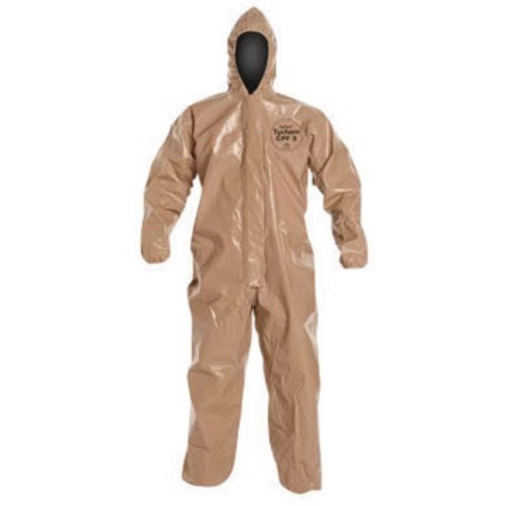 Dupont Personal Protection C3127TTN2X00 DuPont 2X Tan Tychem CPF3 Couvre-tout de protection contre les produits chimiques avec coutures scellées, rabat anti-tempête sur la fermeture à glissière avant, capuche attachée et poignets et chevilles élastiques