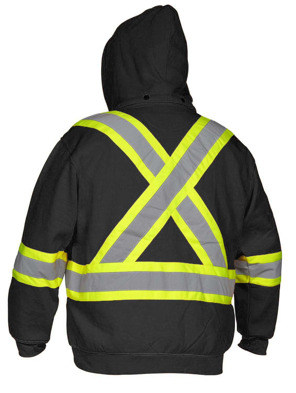 Sweat à capuche de sécurité avec capuche amovible à double épaisseur, 100 % polyester polaire lisse à l'extérieur et douce au toucher à l'intérieur • Poche kangourou à l'avant • Fermeture éclair robuste sur toute la longueur • Capuche amovible à double épaisseur • Poignets côtelés • Ourlet élastique recouvert de maille résistante