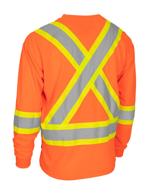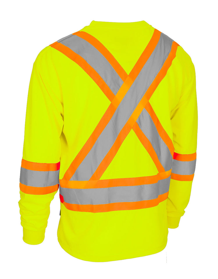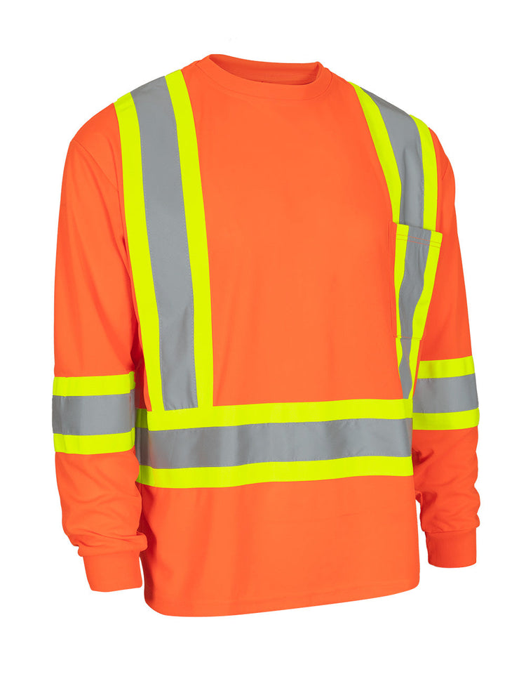 T-shirt de sécurité à manches longues et col rond haute visibilité avec poche poitrine