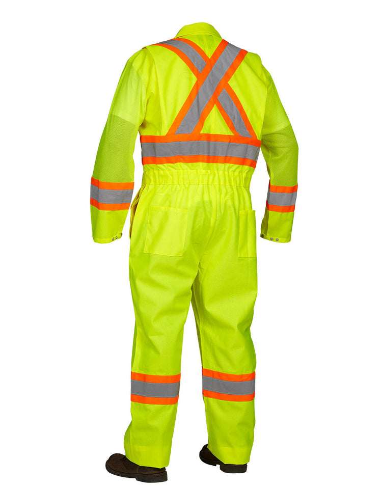 Présentation de notre Couvre-tout de sécurité haute visibilité Flagger, fabriquée à partir de 8 oz léger. Tricot polyester fluo. Les caractéristiques comprennent un devant recouvert à boutons-pression, de multiples poches, des poignets à boutons-pression réglables et un véritable dos à double action pour plus de flexibilité et de facilité de mouvement.