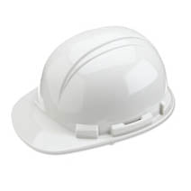Casque de sécurité avec auge anti-pluie, coque en PEHD, suspension en nylon 4 points, réglage par pin-lock OU réglage par cliquet « Sure-Lock », 4 points d'ancrage pour mentonnière. Conforme aux normes CSA Type 1 Classe E et ANSI Type I Classe E.