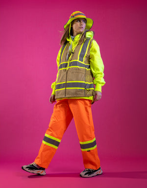 Présentation de notre veste de sécurité haute visibilité pour femmes, conçu pour un ajustement sur mesure. Fabriqué à 100 % en polyester avec des panneaux en maille, il dépasse les normes CSA Z96 classe 2 niveau 2. Doté d'un cordon de serrage à la taille et d'une poche intérieure pratique pour téléphone portable pour plus de fonctionnalité.