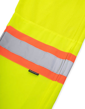 Faites l’expérience du confort et de la sécurité avec notre pantalon de circulation en tricot haute visibilité pour femmes. Fabriqués à partir de tricot 100 % polyester léger, ils sont idéaux pour le travail d'été. Conçu avec des aérations aux genoux pour la respirabilité, des fermetures éclair latérales à double sens pour un logement facile des bottes, des poches plaquées arrière pratiques et une ceinture élastique avec une sangle pour un ajustement sécurisé. Parfait pour rester visible et confortable au travail.
