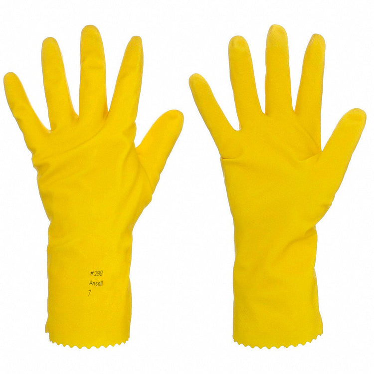Gants en latex de caoutchouc naturel doublés de coton jaune