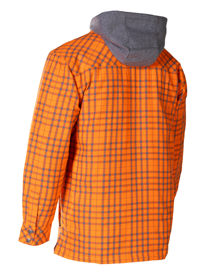 Hi Vis Orange/Silver Micro Plaid Hooded Quilt-Lined Flannel Shirt Jacket