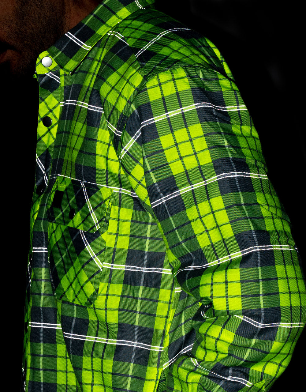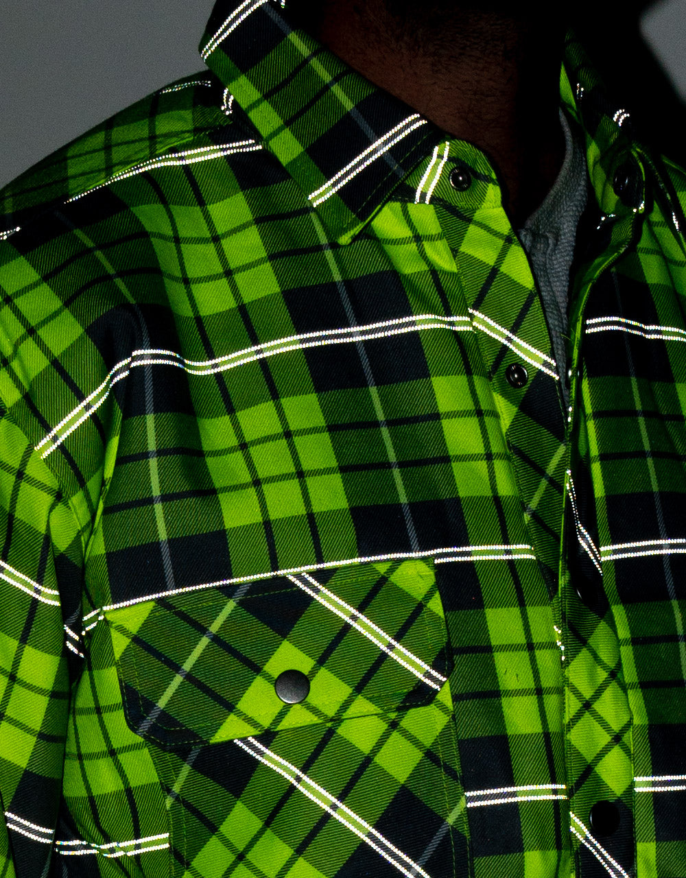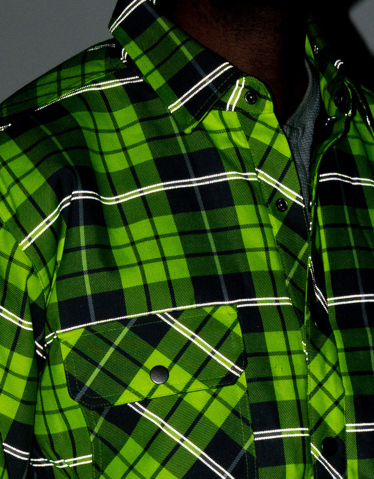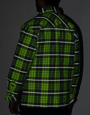 Hi Vis Plaid Quilted Flannel Shirt Jacket with Reflective Striping