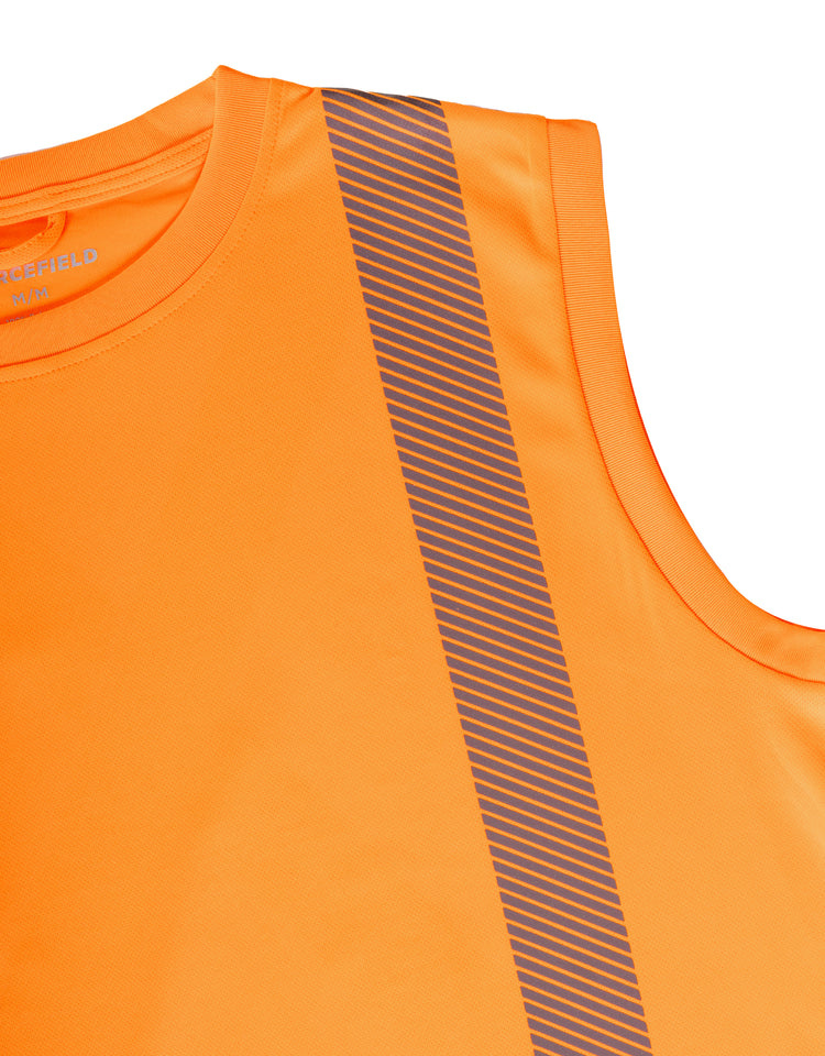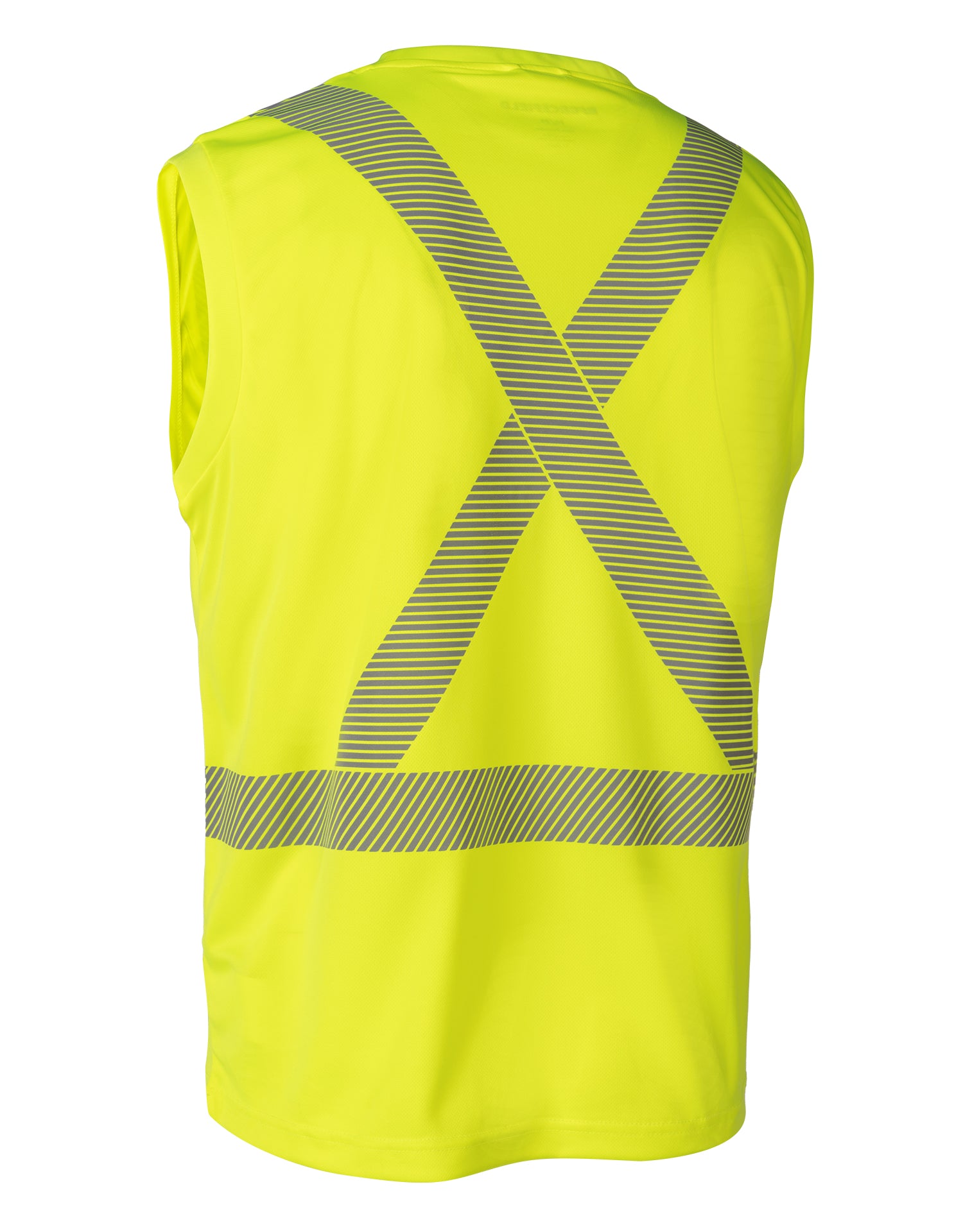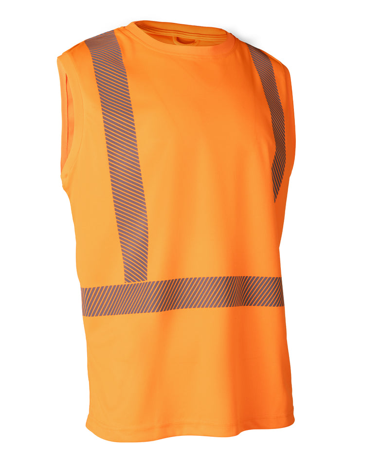 Stay comfortable and protected with our Hi-Vis Sleeveless Tee. Made with breathable fabric, segmented reflective tape for flexibility, and a handy chest pocket, built for demanding environments.
