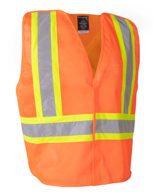 This lightweight, budget-friendly safety vest is designed for essential visibility and quick-release safety. Made with breathable 100% polyester mesh, it features a 5-point tear-away system, front Velcro closure, and 4" reflective tape with contrast backing for enhanced visibility in demanding work environments.