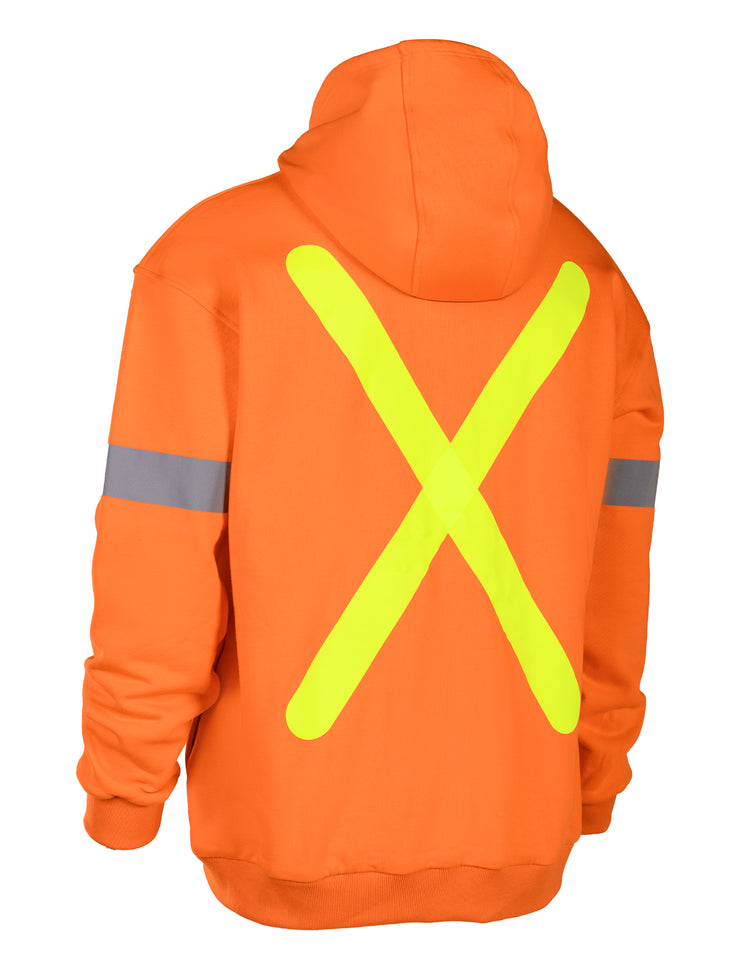 The Retro Cotton Hoodie with Reflective Arm Striping combines classic comfort with enhanced visibility. Made from 100% pre-shrunk cotton fleece, it’s breathable, durable, and features reflective tape on the front, arms, and back for added safety. Perfect for work or casual wear in any light condition.